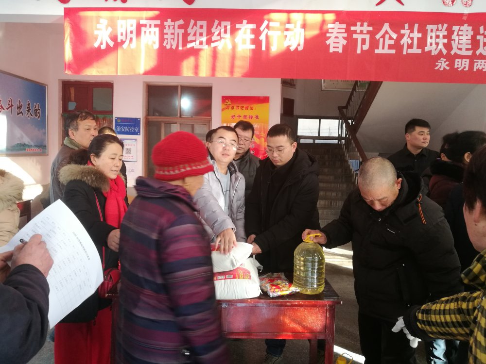 本次“永明兩新組織在行動 春節(jié)企社聯(lián)建送黨情”活動,慰問了大營村41戶困難家庭,為他們送去了米、面、油等生活用品,送去了深切的關(guān)懷和新年祝福,送去了對生活美好的祝愿。